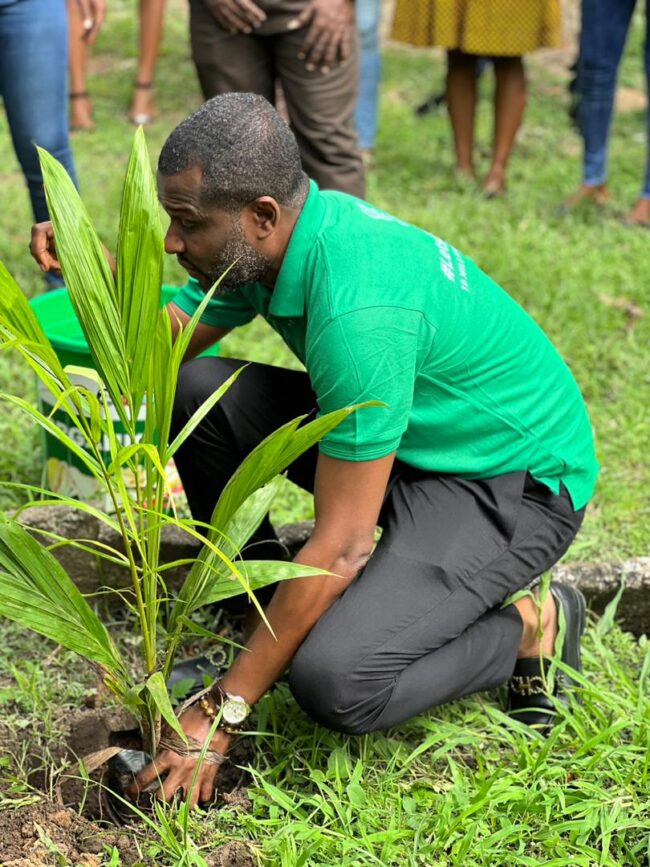Deputy Minister for Tourism, Arts and Culture, Hon. Mark Okraku Mantey leads in the planting of trees to commemorate Green Ghana Day at the Ministry.