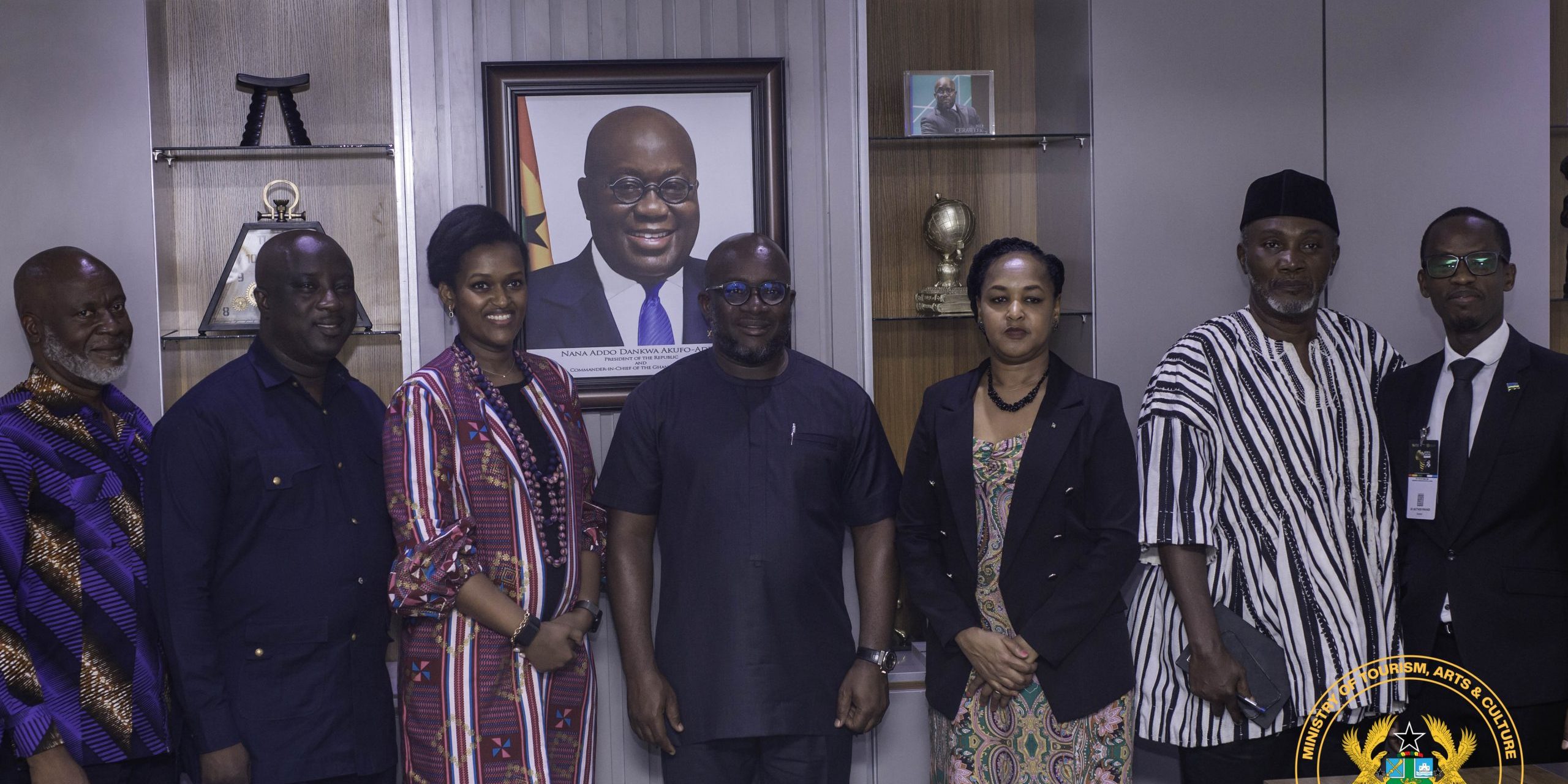 The Minister of State for Youth and Arts in Rwanda, Hon. Sandrine Umutoni paid a courtesy call on Hon Egyapa Mercer at his office on 11th October 2024. She was in Accra to attend the African Cinema Summit (ACS).